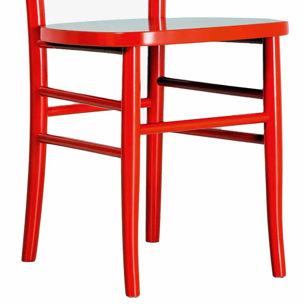 Die ziegelrote Lackierung auf der gesamten Oberfläche des Stuhls ist nicht nur optisch ansprechend, sondern auch äußerst pflegeleicht. Sie schützt das Holz vor Feuchtigkeit und Kratzern, sodass der Stuhl auch nach vielen Jahren noch wie neu aussieht. Die sorgfältige Lackierung bringt den natürlichen Charme des Holzes besonders gut zur Geltung und macht den Stuhl zum Design-Highlight in jedem Raum.