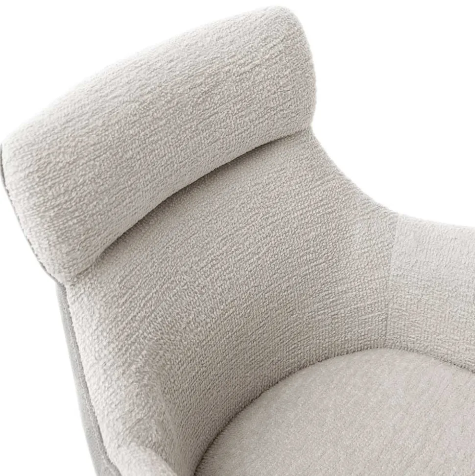 Die Kontaktflächen des „Delamaro“ sind mit weichem Bouclé bezogen, während die Rückseiten ein Gewebe in Vintage-Optik ziert. Beide Materialien bestehen aus 100% Polyester, was sie besonders robust und pflegeleicht macht.