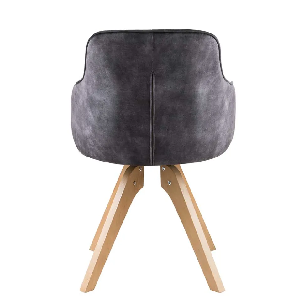 „Taly“ besticht nicht nur durch sein Aussehen, sondern auch durch seine hochwertige Verarbeitung. Das stabile, schräg gestellte Vierfußgestell aus massiver Buche, lackiert in warmen Eichefarben, bietet sowohl Stabilität als auch Stil. Der wertige Veloursbezug in Anthrazit mit Vintage-Optik, aus 100% Polyester gefertigt, ist nicht nur optisch ansprechend, sondern auch besonders langlebig und pflegeleicht. Die eleganten Steppnähte an der perfekt geformten Rückenlehne runden das edle Erscheinungsbild ab.