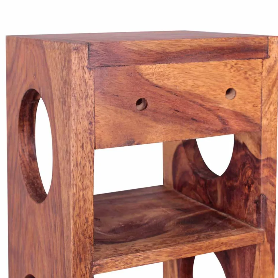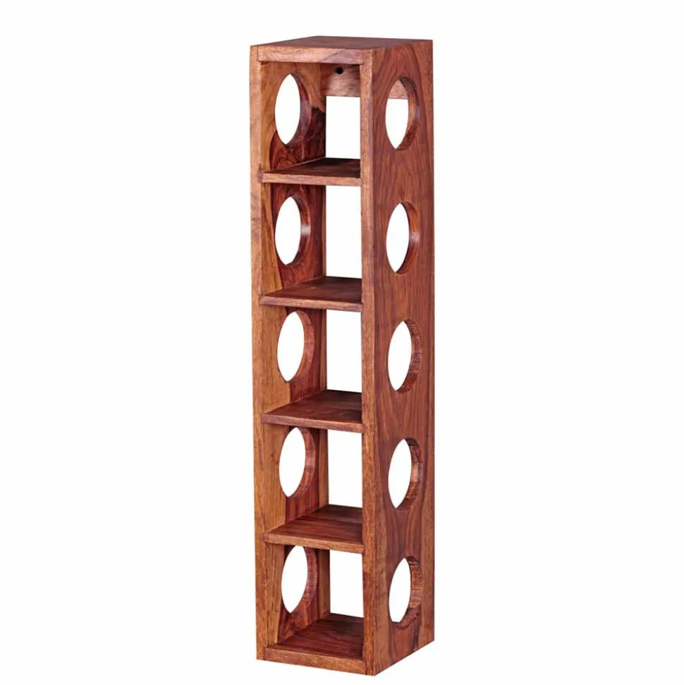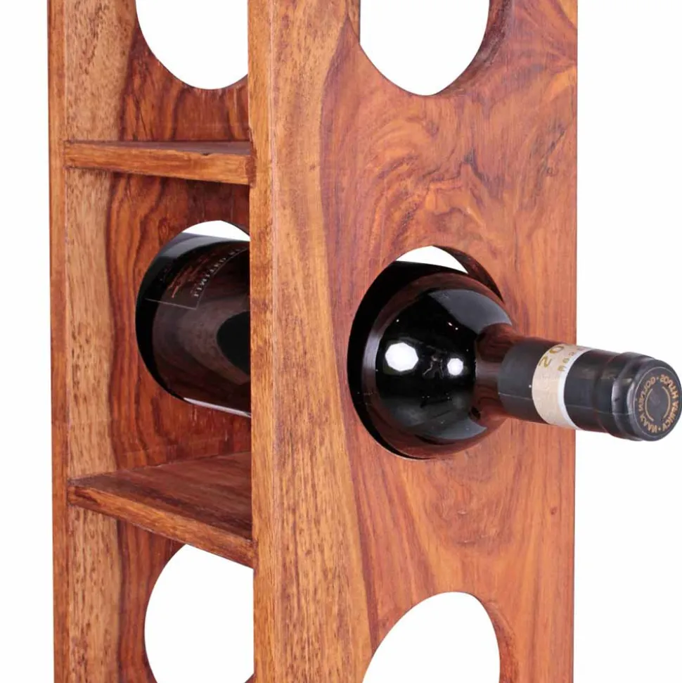 Massives Sheeshamholz – auch bekannt als indisches Palisander – bildet die Basis für dieses Weinregal. Diese edle Hartholzart überzeugt nicht nur durch ihre hohe Dichte und Stabilität, sondern auch durch ihre individuelle Optik. Jedes Stück zeigt eine einzigartige Maserung, die durch das harte, widerstandsfähige Material noch besser zur Geltung kommt. Hohe Beständigkeit gegen Abnutzung, Formstabilität und eine natürliche Resistenz gegen Schädlinge machen Sheesham zu einer hervorragenden Wahl für langlebige Möbel mit Charakter.
