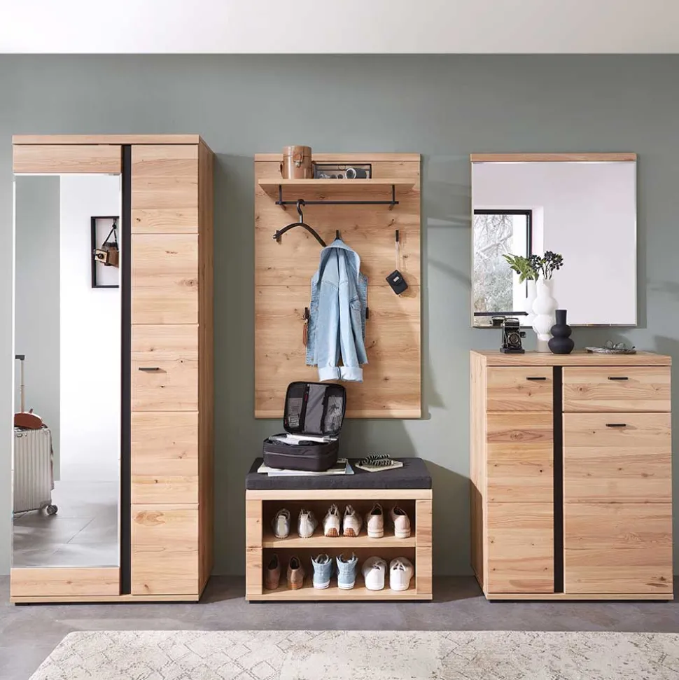 - Trendige Garderoben Möbel in Eschefarben (Front) und Wildeichefarben (Korpus) sowie Schwarz