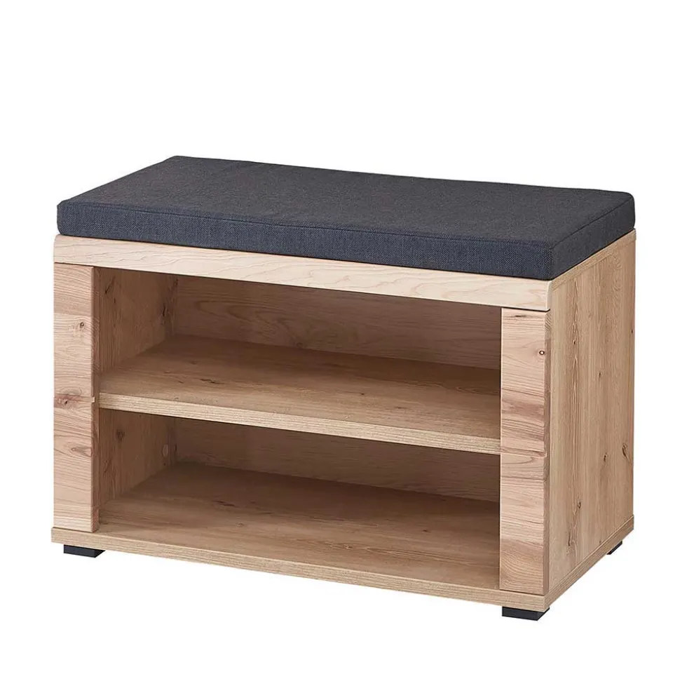 - Zwei Ablagen bieten Platz für Schuhe und mehr