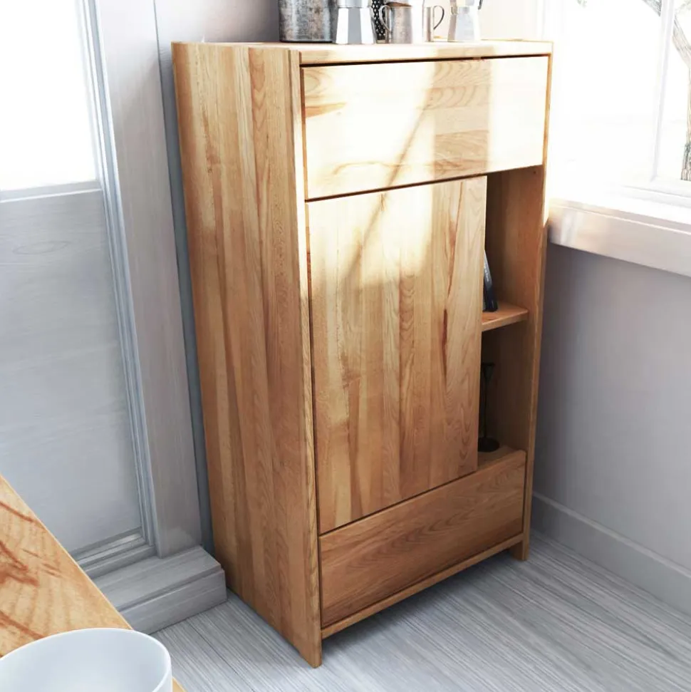 Eintauchen in die Welt des modern-natürlichen Wohnens: Unsere Hochkommode „Salomonia“ verkörpert ein Design, das Natürlichkeit mit modernem Flair verbindet. Gefertigt aus massiver Kernbuche, einem Holz bekannt für seine Haltbarkeit und charakteristische Maserung, bietet dieses Möbelstück nicht nur optische, sondern auch funktionale Vorteile. Die durchgehenden Lamellen – einzelne, längs verlaufende Holzstücke – sorgen für eine durchgängige, harmonische Optik und betonen die Echtheit des Materials.