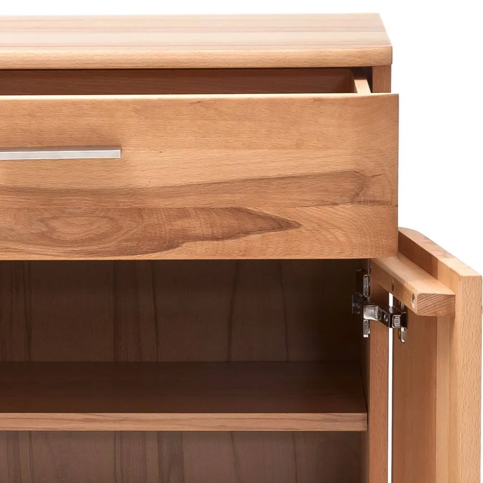 - Teilmassiv aus Kernbuche Massivholz (Front) und Spanplatte (Korpus) gefertigt