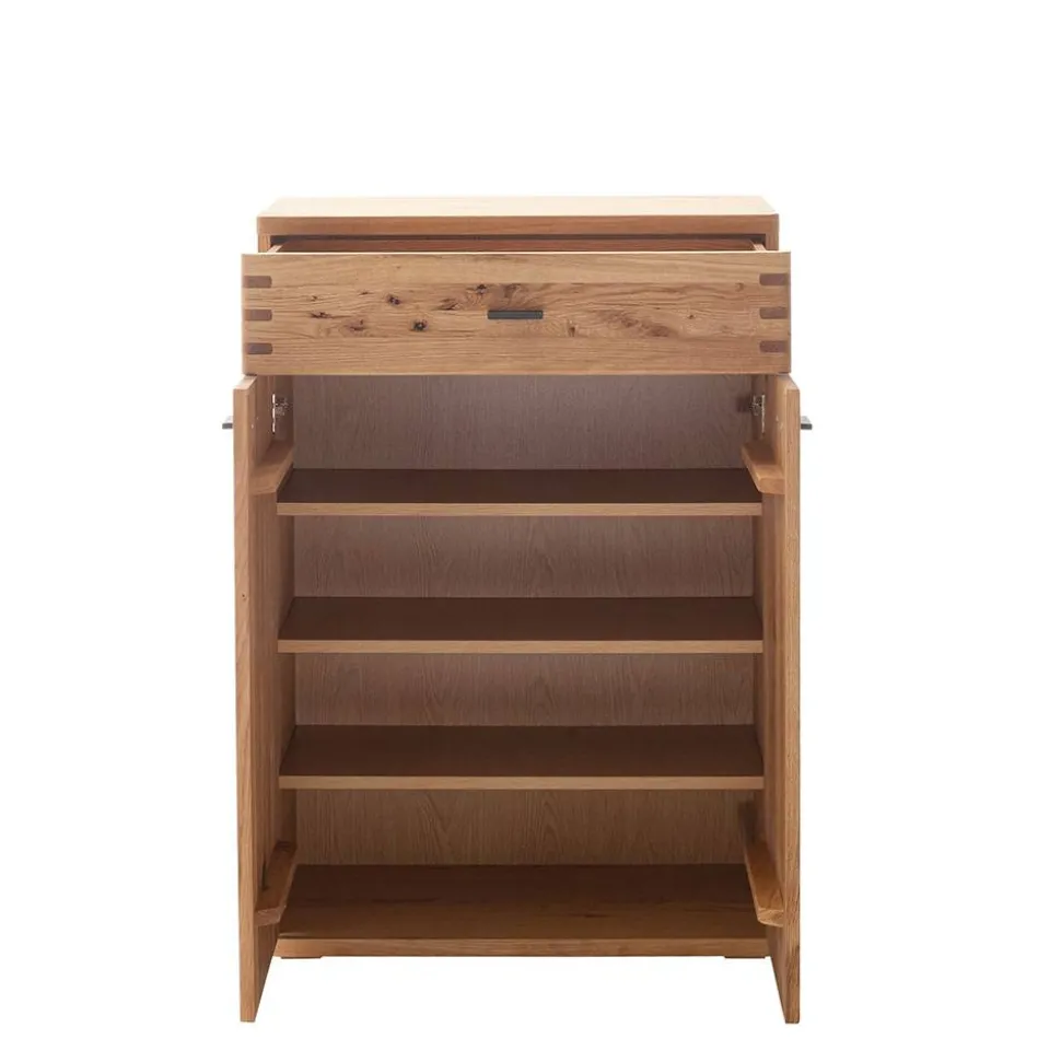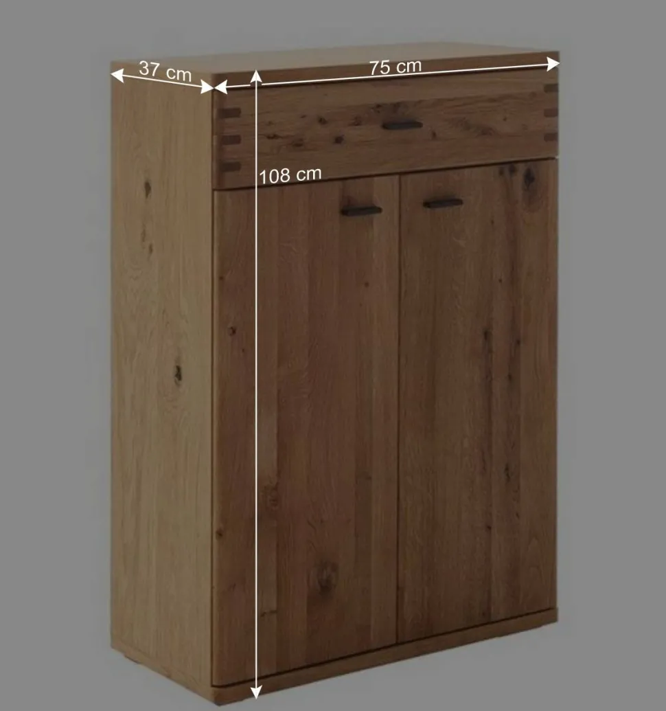 - Aus Balkeneiche Massivholz (Front) und Spanplatte (Korpus) gefertigt
