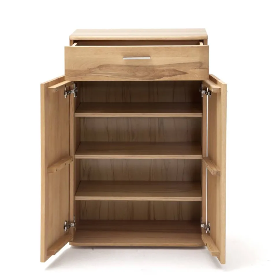 - Innen befinden sich drei Einlegeböden, Platz für max. 12 Paar Schuhe bis Größe 39