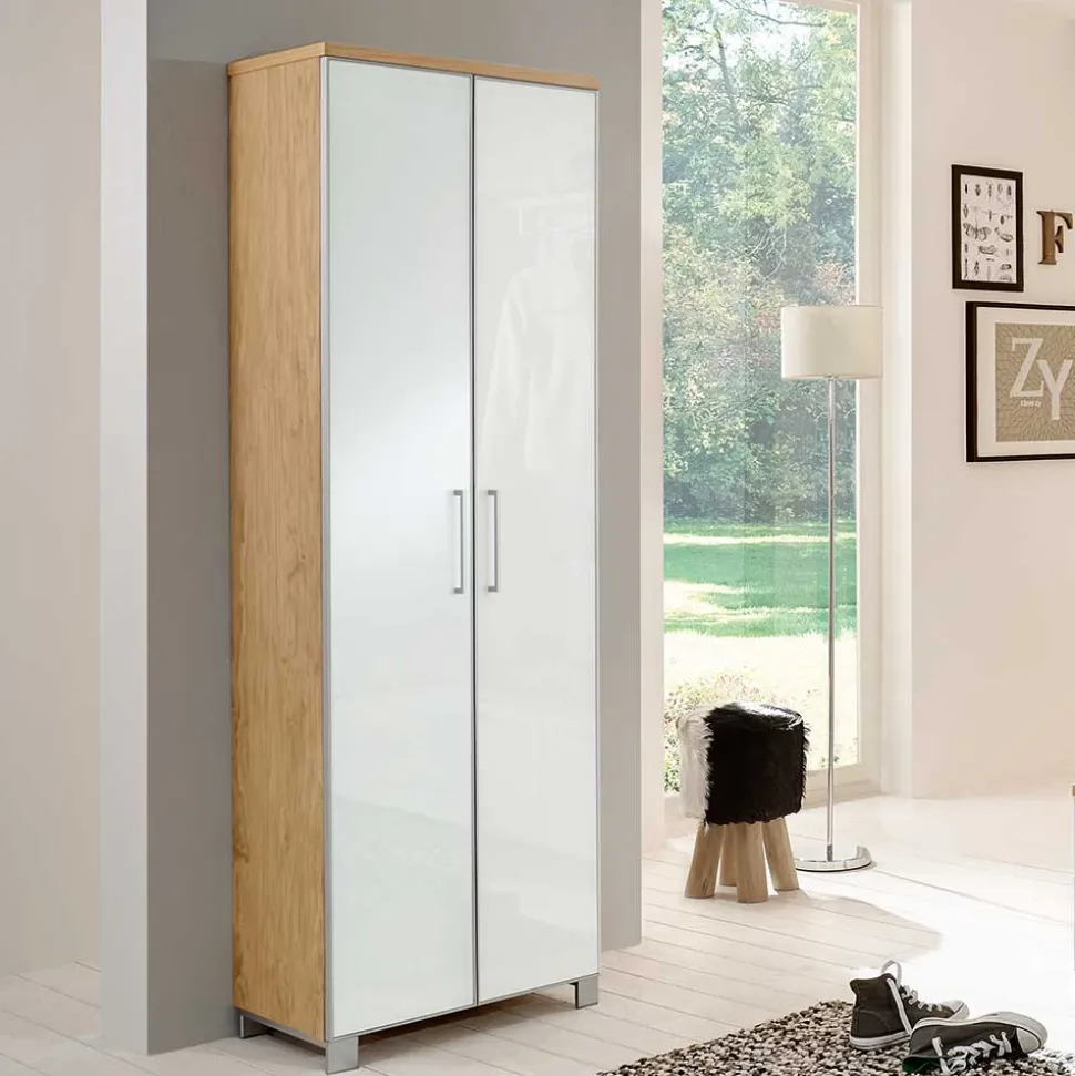 Modernes Design, das begeistert Das Flurgarderobenset „Wynoca“ zeichnet sich durch sein zeitgemäßes und ansprechendes Design aus. Die klaren Linien und die weißen, mit Spezialglas beschichteten Fronten harmonieren perfekt mit dem warmen Ton des Eiche Bianco furnierten Korpus. Der alufarbige Rahmen aus MDF setzt zusätzliche Akzente und unterstreicht die hochwertige Optik dieses Ensembles. Diese Kombination bringt einen Hauch von Moderne und Eleganz in Ihren Flur, der Ihre Gäste willkommen heißt.
