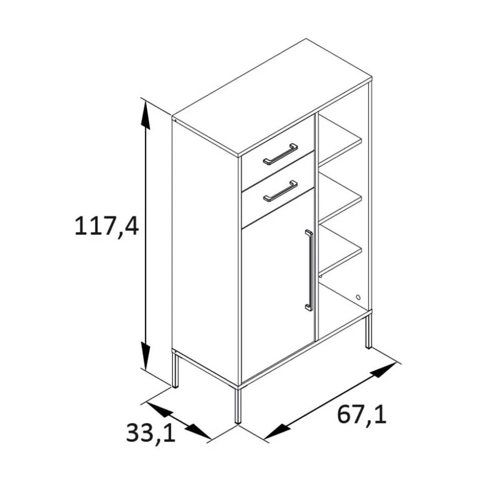 - Maße: BxHxT: 67,1×117,4×33,1 cm