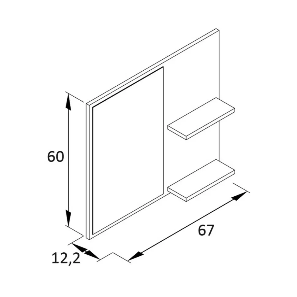 - Spiegel mit Ablagen: Der 67 cm breite, 60 cm hohe und 12 cm tiefe Spiegel ist nicht nur ein optisches Highlight, sondern bietet mit seinen zwei Ablagen auch praktischen Stauraum für Ihre wichtigsten Kleinigkeiten wie Schlüssel oder Deko. Die stabile Rückwand garantiert eine sichere Wandmontage und ist der ideale letzte Check vor dem Verlassen des Hauses.