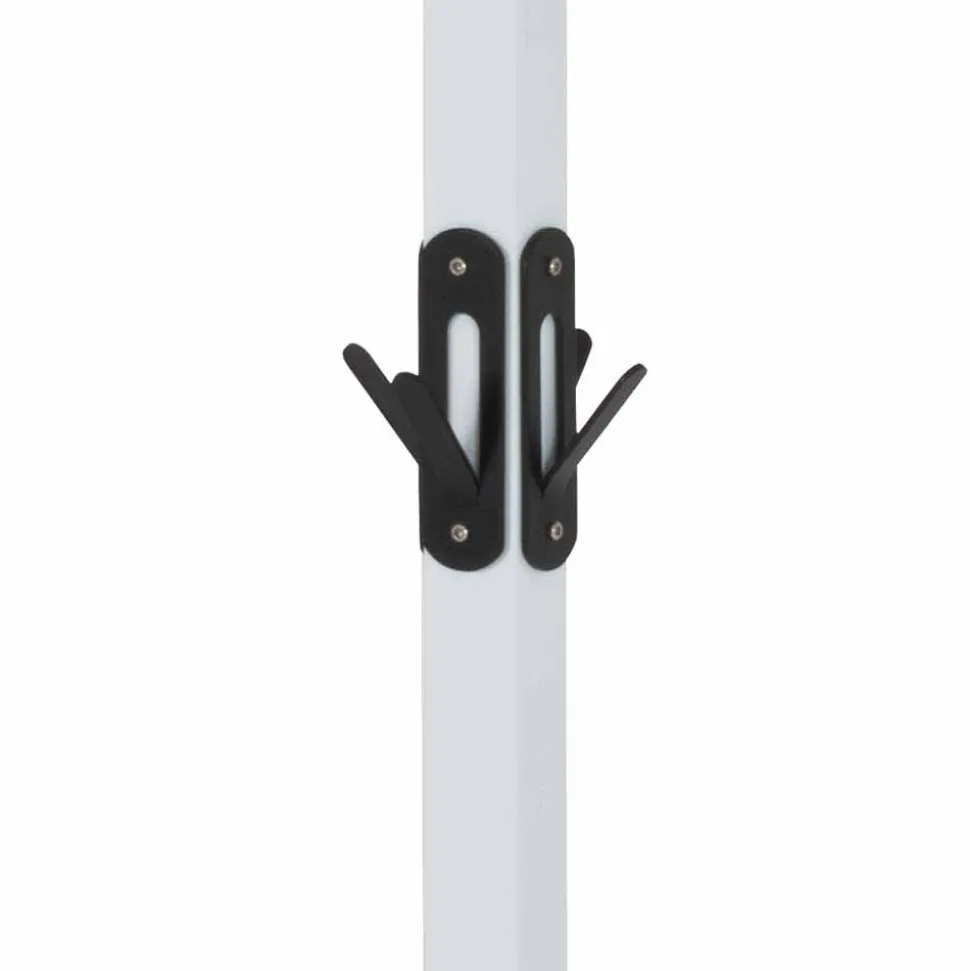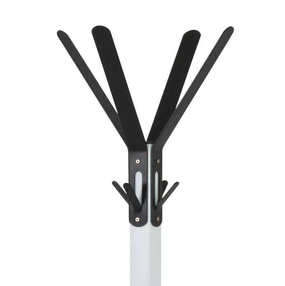 - Mit insgesamt zwölf Kleiderhaken in Schwarz aus Stahl: vier große und vier kleine Haken an der oberen Krone, mittig vier kleine Haken
