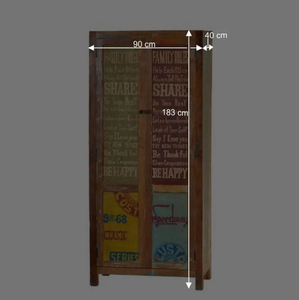Vintage Look bedeutet, Schönheit in der Geschichte zu sehen. Jedes Stück der „Creek“-Serie ist aus massivem Recyclingholz gefertigt, was jedem Möbelstück eine eigene Geschichte und einen individuellen Charakter verleiht. Die bunten, individuell lackierten Oberflächen und die Fronten, die mit Schriften im Design von alten Werbeplakaten versehen sind, schaffen ein künstlerisches und umweltfreundliches Ambiente in Ihrem Eingangsbereich.