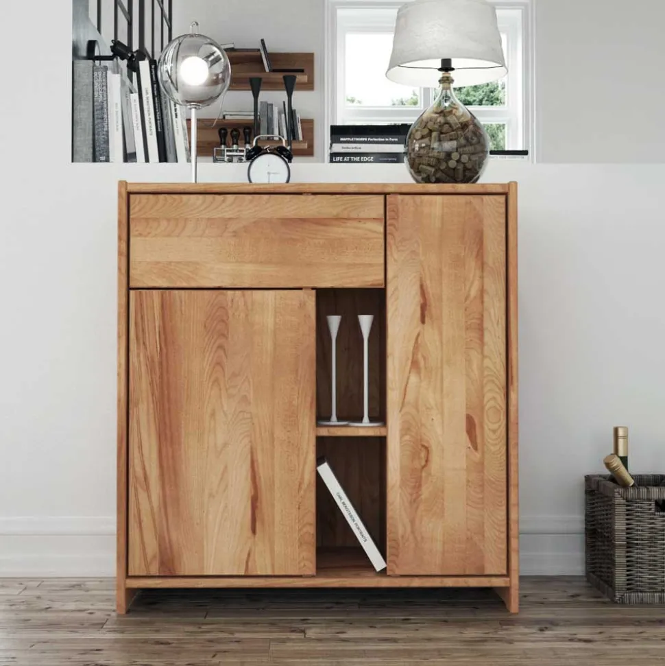 Erleben Sie mit der Kommode „Salomonia“ eine perfekte Symbiose aus modernem Design und der unverfälschten Schönheit der Natur. Gefertigt aus reiner, massiver Kernbuche, besticht dieses Möbelstück durch seine beeindruckende Langlebigkeit und die auffällige Maserung, die jede Kommode zu einem Unikat macht. Die durchgehenden Lamellen unterstreichen die Handwerkskunst und sorgen für eine homogene Optik, die das natürliche Flair Ihres Wohnraums aufwertet.