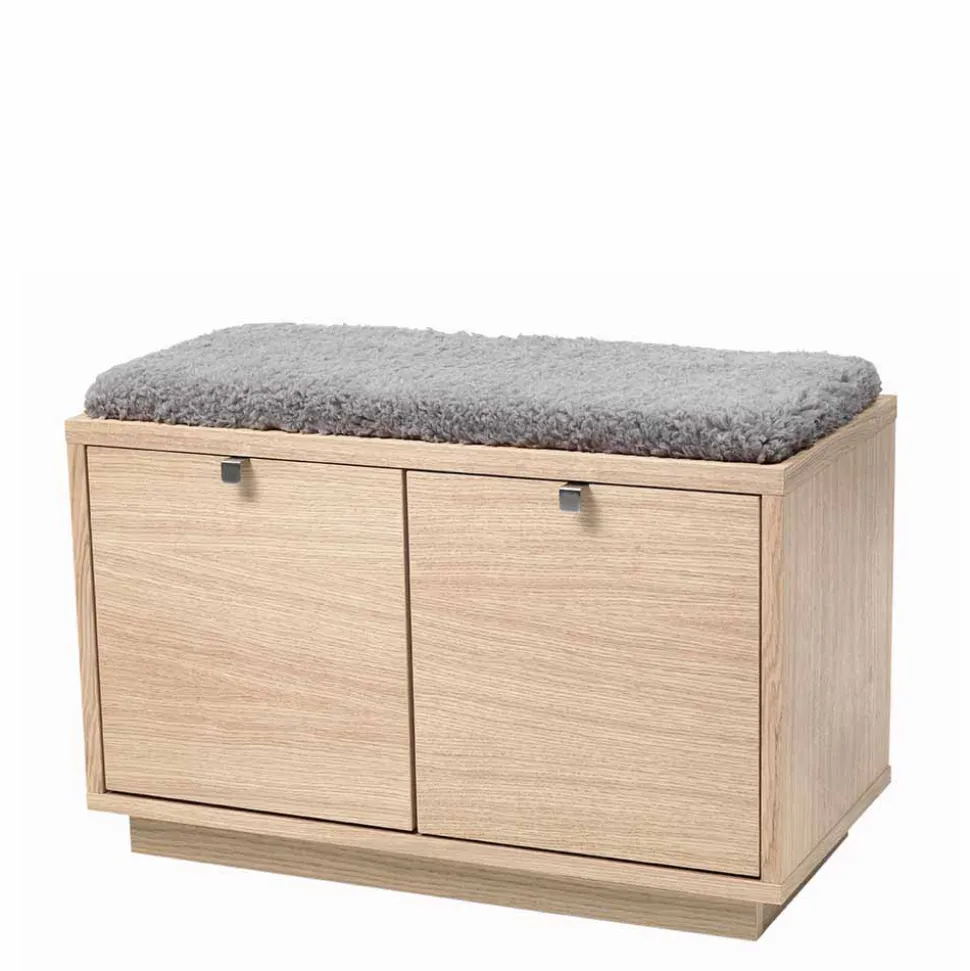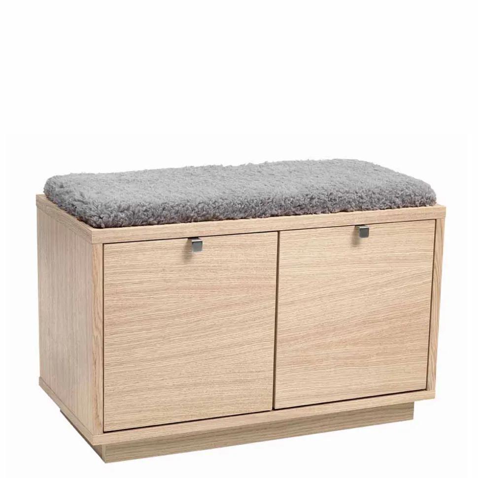 - Schlichte Garderobenbank in Eiche White Wash und Grau