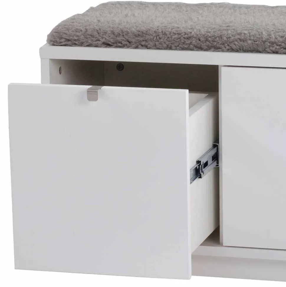 - Schnörkellose Garderobenbank in Weiß und Grau