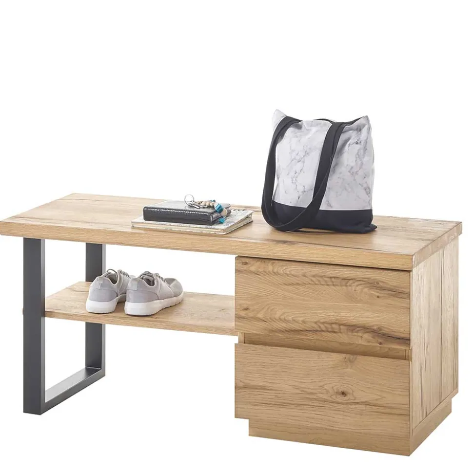 - Praktische Garderobenbank in Eichefarben und Schwarz