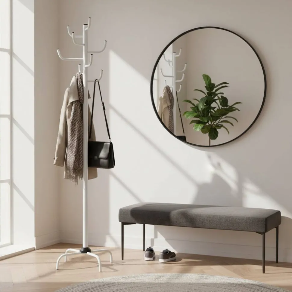 - Schlichter, weißer Garderobenständer