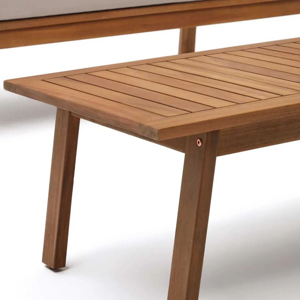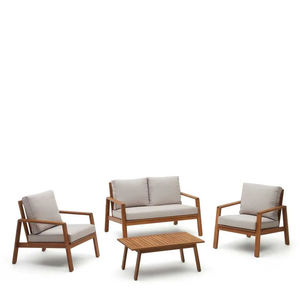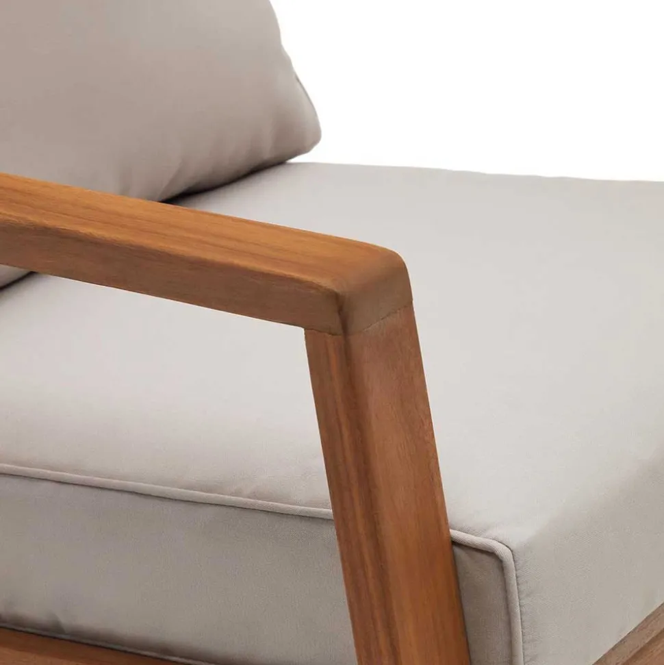 Hochwertige Materialien sind der Schlüssel zu langlebigen Möbeln, die Freude bereiten. Das massive Akazienholz, aus dem diese Lounge gefertigt ist, gehört zu den widerstandsfähigsten Holzarten und begeistert mit seiner natürlichen Maserung und warmen Ausstrahlung. Die lackierten Oberflächen schützen das Holz vor Feuchtigkeit und verleihen ihm zusätzlichen Glanz. Ergänzt wird diese Basis durch Polster aus strapazierfähigem Webstoff, der zu 100 % aus Polyester besteht. Das Material ist nicht nur pflegeleicht, sondern auch ausgesprochen robust, sodass es den Anforderungen des Alltags spielend standhält.