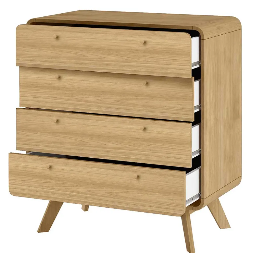 Das standfeste Untergestell aus MDF mit leicht nach außen geneigten Füßen sorgt nicht nur für einen sicheren Stand, sondern auch für eine ansprechende Optik. Dank der detaillierten Montageanleitung ist die Kommode leicht zu montieren, sodass Sie ohne großen Aufwand einen Hauch von Skandinavien in Ihr Zuhause bringen können.
