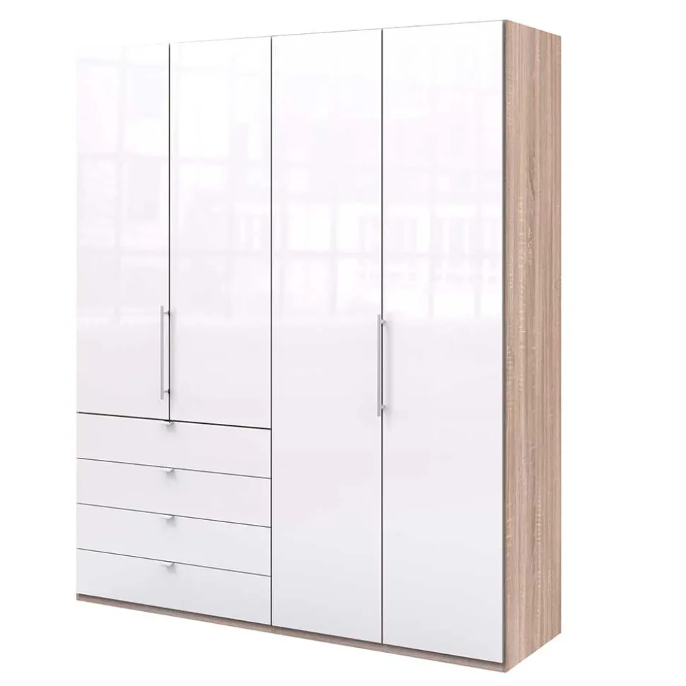 - Wirkungsvoller Kleiderschrank in Weiß und Eiche Sägerau