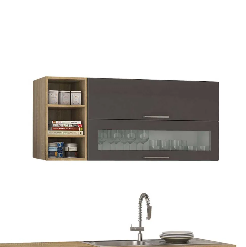 Ein elegantes Zusammenspiel aus klaren Linien, hochwertigen Materialien und einem durchdachten Aufbau – genau das verkörpert die Küchenzeile „Bozenia“. Dieses Küchenensemble bietet nicht nur modernes Design, sondern auch eine umfassende Ausstattung, die sowohl funktional als auch optisch begeistert. Die Küchenzeile setzt sich aus folgenden Elementen zusammen: einer durchgehenden Arbeitsplatte, einem Herdumbau, einem Hängeregal, einem Hängeschrank, einem Kühlschrank-/Ofen-Umbau, einem Spülenschrank, einem Unterschrank, einem offenen Unterschrank-Regal sowie einem stilvollen Wandregal. So entsteht eine perfekt organisierte Küche mit viel Stauraum und klarer Struktur.