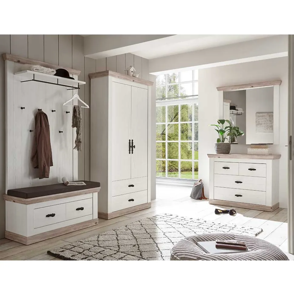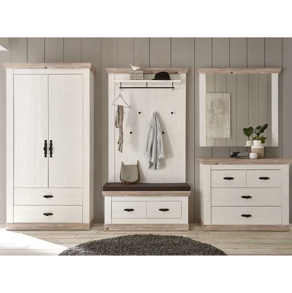 - Erstklassiges Garderoben Set in Weiß und Pinie verwittert