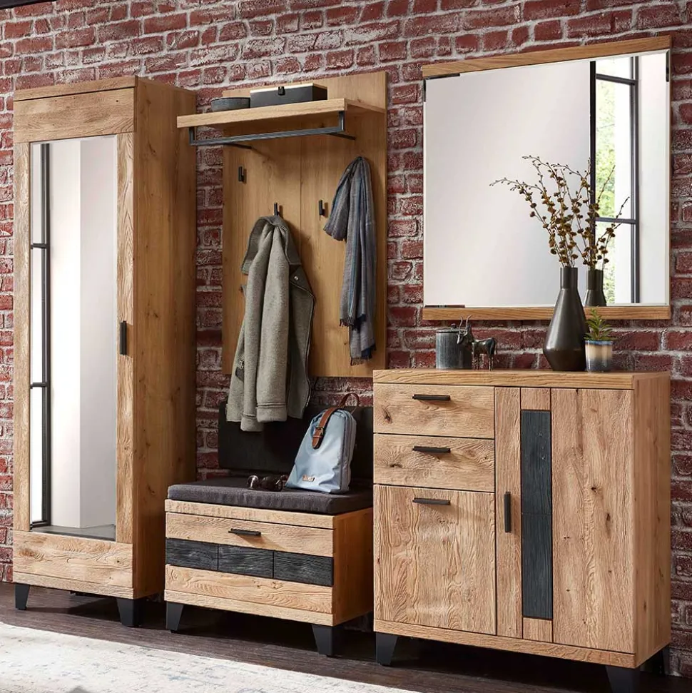 - Grandiose Garderobenmöbel in Wildeichefarben und Dunkelgrau