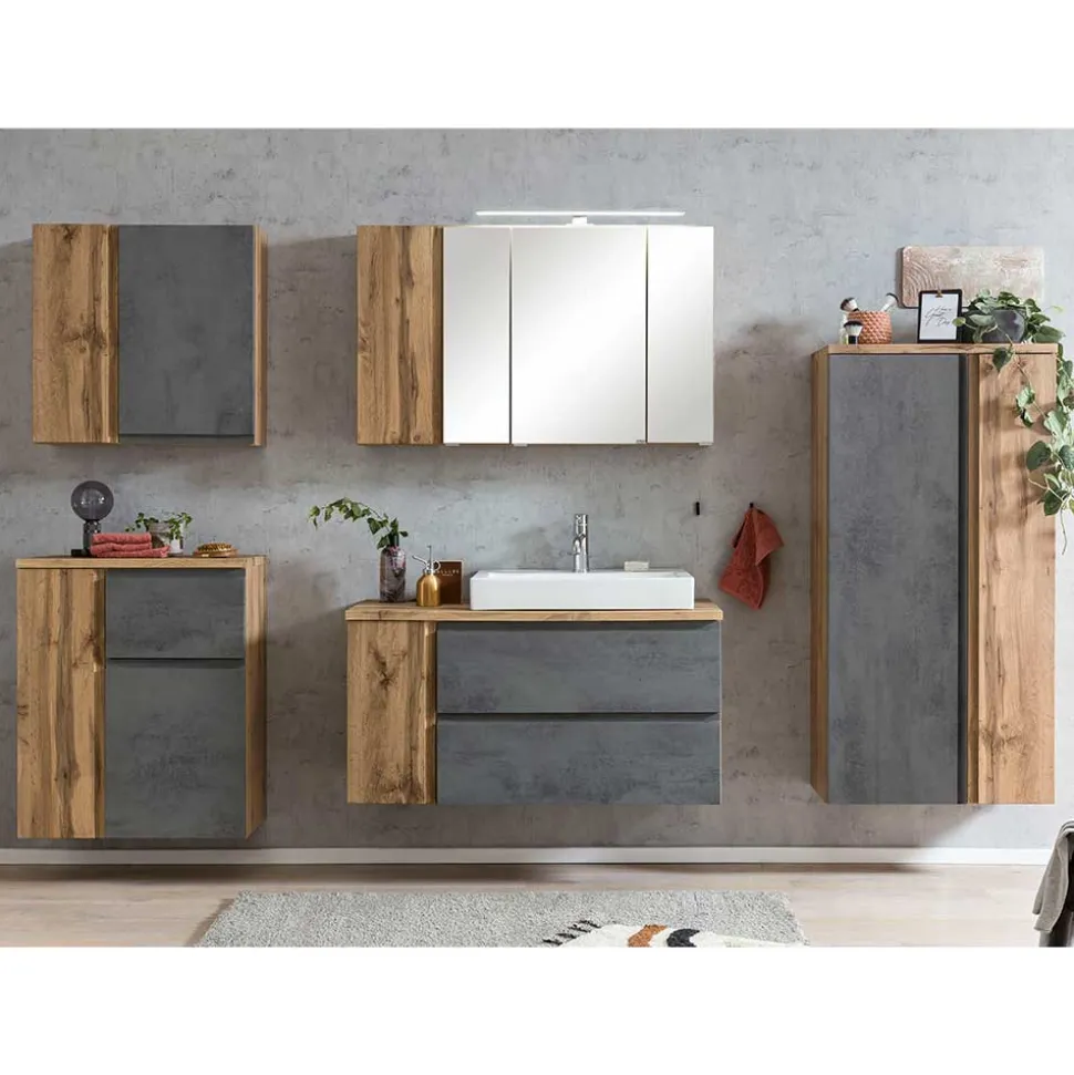 - Schicke Badmöbel in Betongrau und Wildeichefarben
