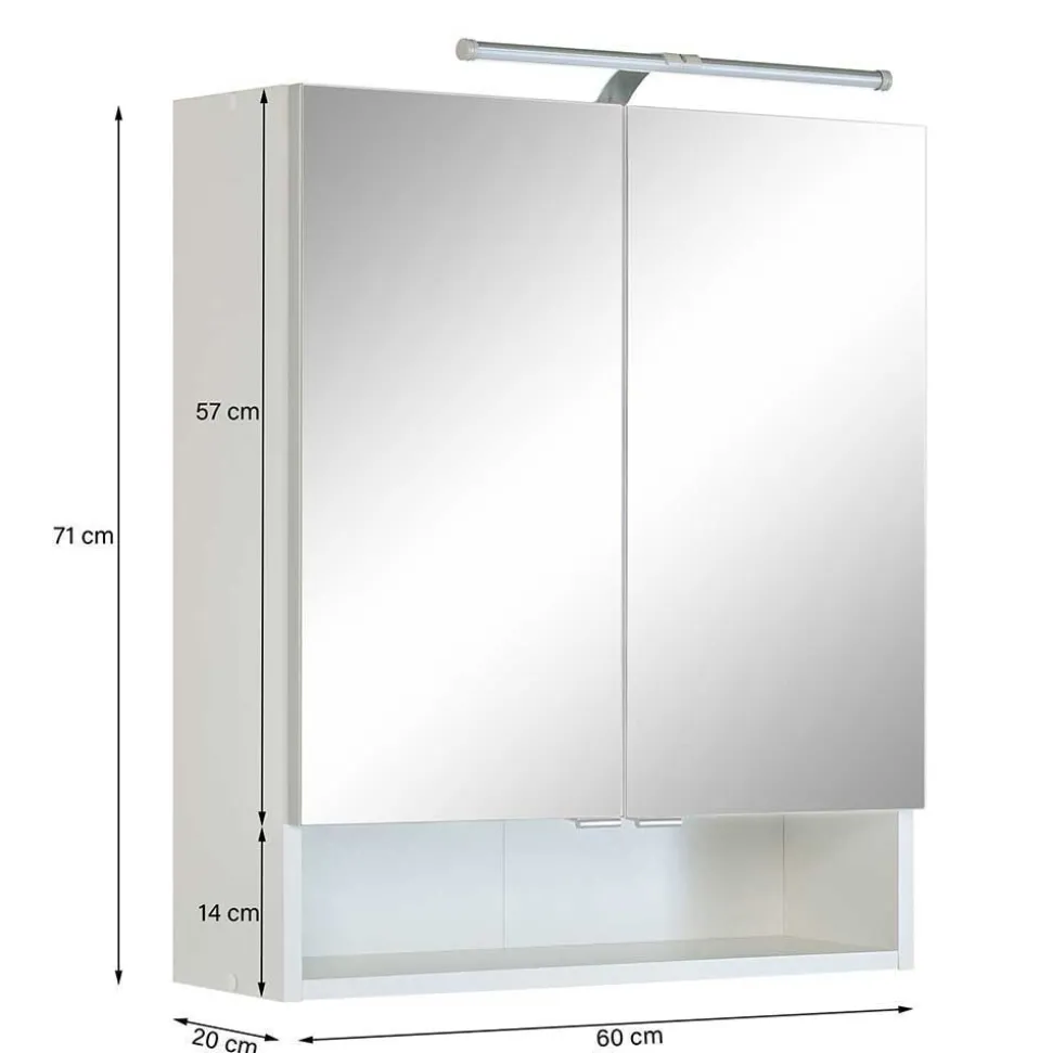 - Maße mit Aufbauleuchte: BxHxT: 60x74x28 cm