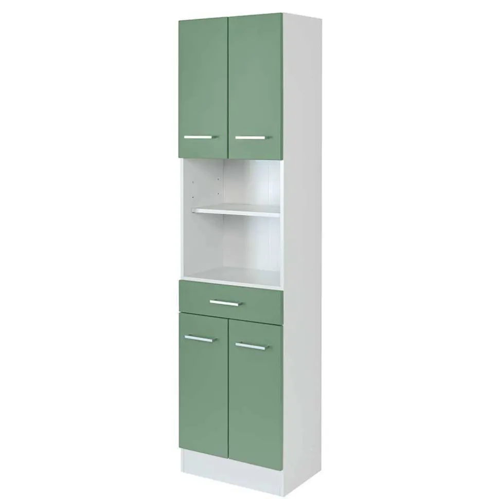 Mit dem Badezimmer-Set „Loenixa“ verwandelt sich jedes Bad in eine stilvolle und funktionale Wohlfühloase. Dieses Set besteht aus einem großzügigen Hochschrank, einem eleganten Spiegelschrank und einem praktischen Waschbeckenunterschrank. Die Kombination aus strahlendem Weiß und frischem Grün bringt Leben und Leichtigkeit in Ihr Badezimmer und vermittelt eine Atmosphäre, die jeden Morgen freundlich begrüßt. Das moderne Design mit klaren, geradlinigen Formen wirkt zeitgemäß und einladend. Die bewusst gesetzten Farbakzente lassen den Raum größer, heller und moderner erscheinen. Waschbecken ist bewusst nicht inklusive, um Ihnen die Freiheit zu lassen, Ihr bevorzugtes Modell auszuwählen und perfekt zu kombinieren.