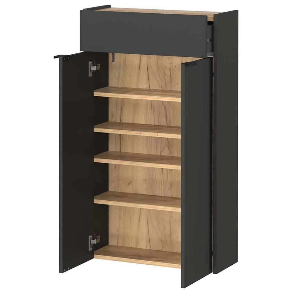 - Praktische Garderobenmöbel in Dunkelgrau und Wildeichefarben