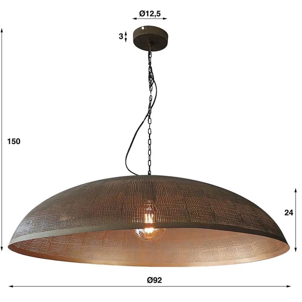 Die Pendelleuchte präsentiert sich in einem eleganten Bronzefarbton mit einem edlen Antik-Finish, das ihrer Oberfläche Tiefe, Struktur und Authentizität verleiht. Dieses Finish sorgt für eine leicht patinierte Optik, die an gealtertes Metall erinnert – ein Statement für Individualität und Geschmack. Jede Nuance erzählt eine kleine Geschichte, jeder Lichtreflex unterstreicht die handwerkliche Qualität.