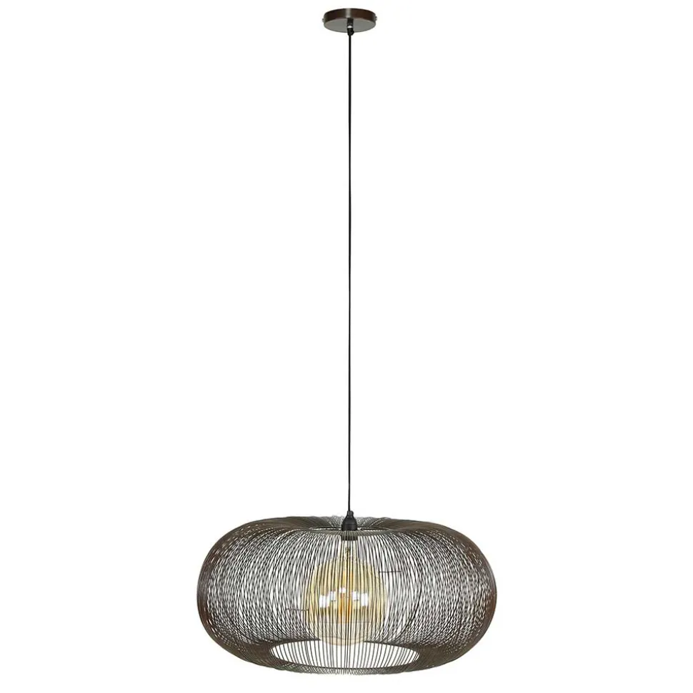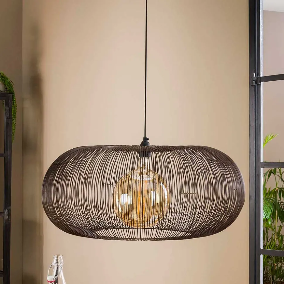 Ob über dem Esstisch, in der Küche oder im Wohnzimmer – „Kumar“ ist weit mehr als eine Lichtquelle. Sie schafft ein Ambiente, das Wärme und Stil harmonisch vereint. Durch den offenen Drahtschirm wird das Licht sanft gestreut und taucht den Raum in ein angenehmes, wohnliches Strahlen. Besonders stimmungsvoll wirkt die Lampe mit einem LED-Filament-Globus-Leuchtmittel mit einem Durchmesser von 9,5 cm, das den industriellen Charme perfekt unterstreicht.