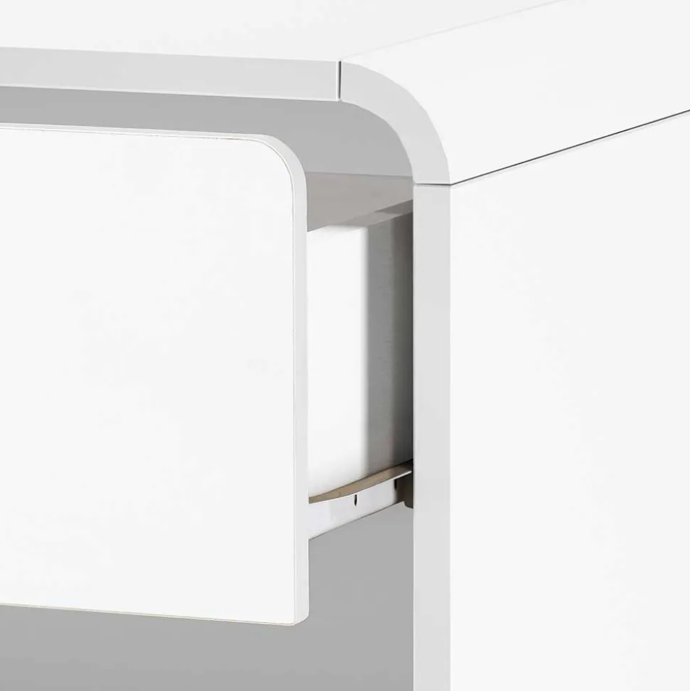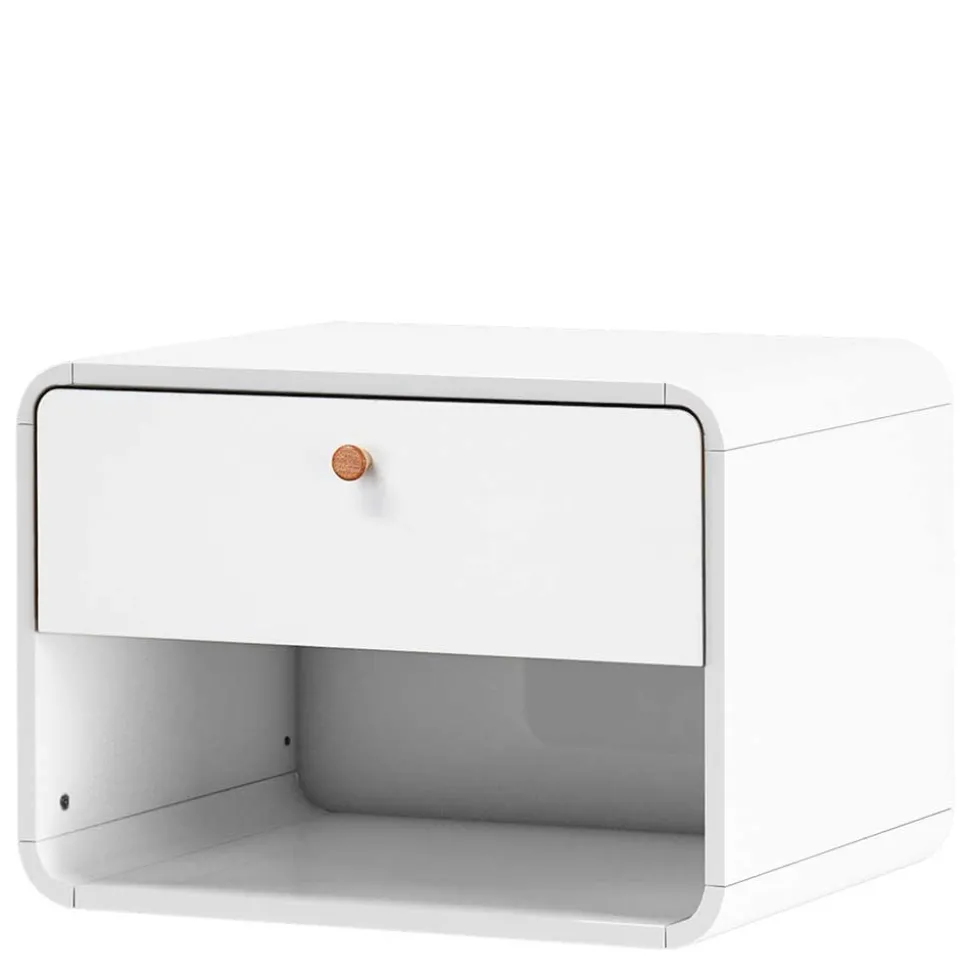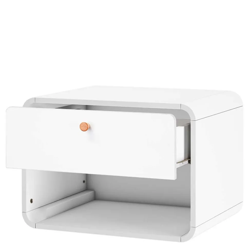 Sanft gerundete Ecken machen die Nachtkonsole nicht nur optisch besonders ansprechend, sondern minimieren auch das Verletzungsrisiko – perfekt für Haushalte mit Kindern oder für alle, die Wert auf sanfte Formen legen. Dank der hochwertigen Verarbeitung und bester Materialqualität bleibt dieses Möbelstück auch nach Jahren der Nutzung in einem hervorragenden Zustand.