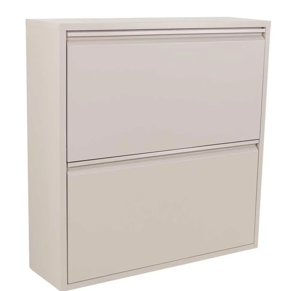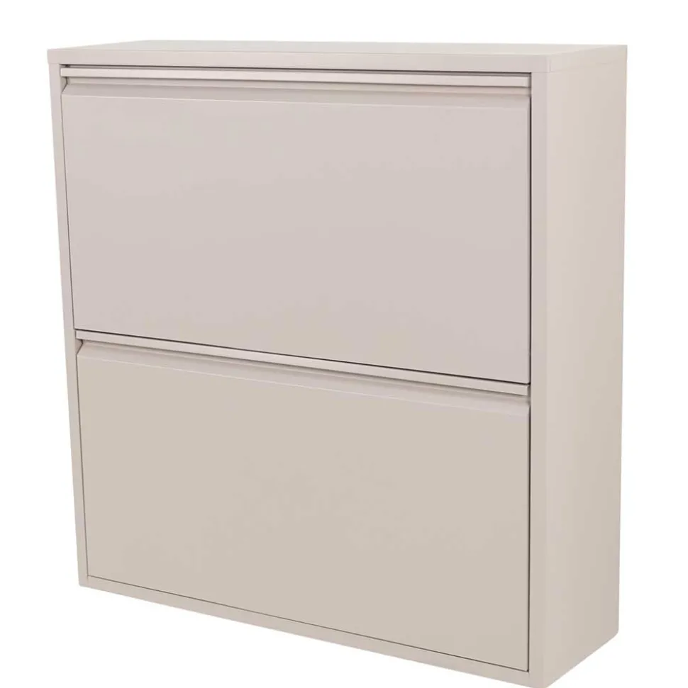Die klare Linienführung und die dezente Farbgebung in Taupe fügen sich harmonisch in jede Einrichtung ein – ob in einer stilvollen Stadtwohnung oder einem gemütlichen Landhausflur. Die pulverbeschichtete Metalloberfläche wirkt edel-matt, ist gleichzeitig pflegeleicht und resistent gegenüber Kratzern und Feuchtigkeit. Ein feuchtes Tuch genügt, um den Schuhschrank wieder makellos erstrahlen zu lassen.