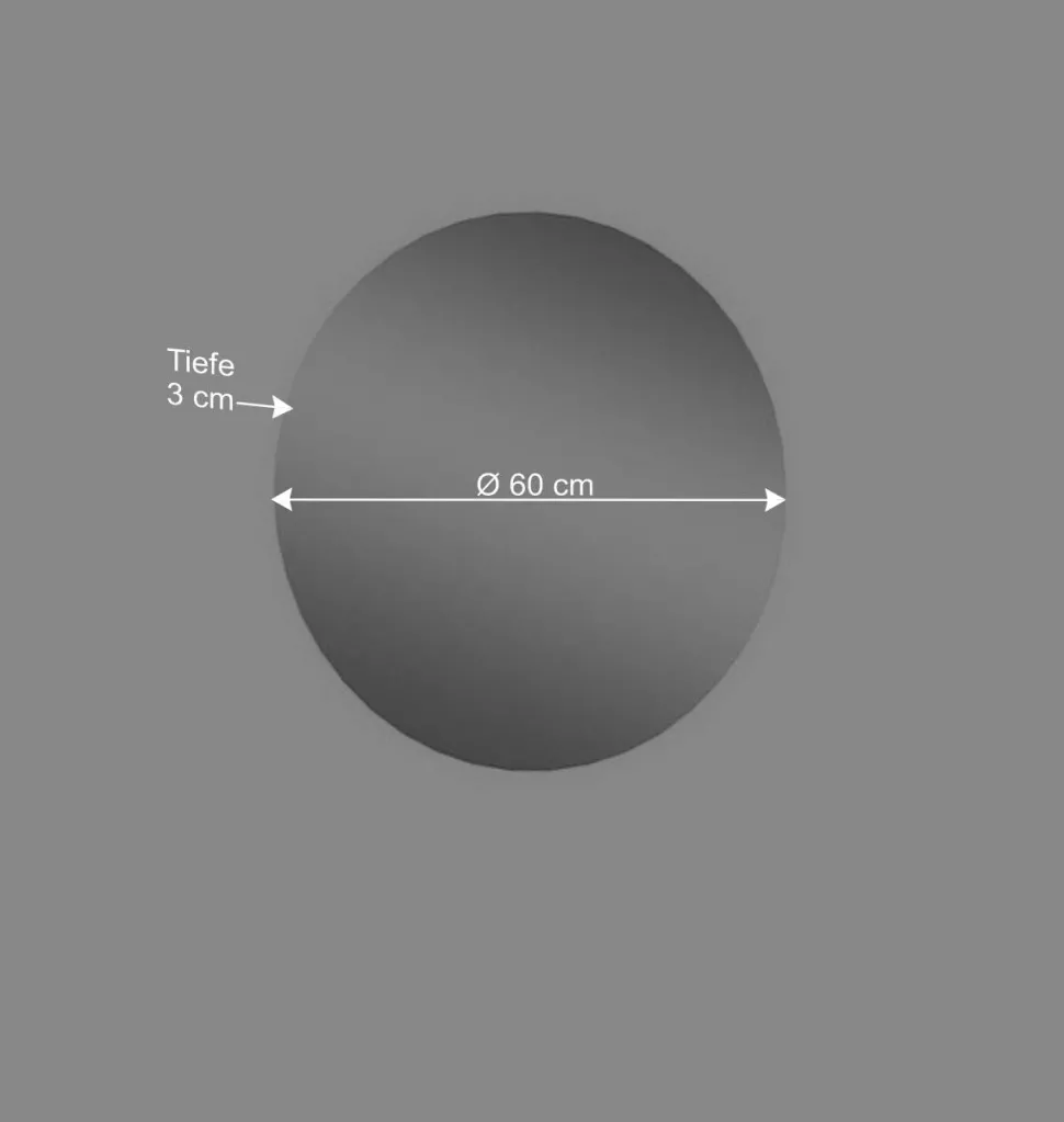 Der runde Spiegel mit einem Durchmesser von 60 cm (Tiefe: 3 cm) bringt Leichtigkeit und Eleganz in Ihren Eingangsbereich. Seine großzügige Spiegelfläche sorgt für eine angenehme Raumwirkung und ist das ideale Pendant zum Schrank.