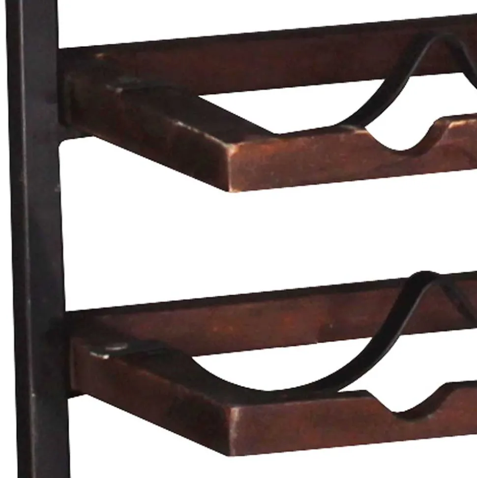 - Attraktives Hänge-Weinregal in Teak antik Dunkelbraun und Schwarz