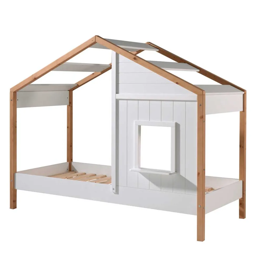 - Halboffenes Hausbett in Eichefarben und Weiß