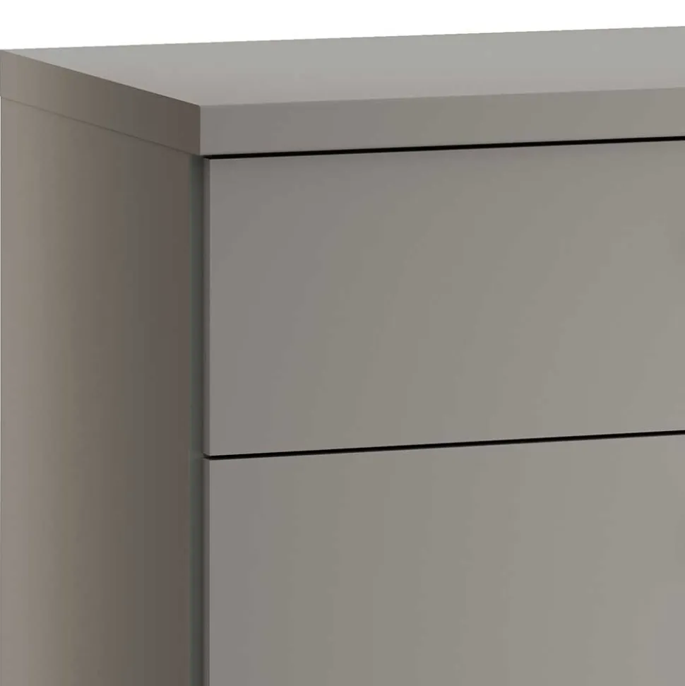 Die pflegeleichte folierte Oberfläche in einem ansprechenden Hellgrau ist nicht nur optisch ein Highlight. Diese spezielle Foliierung schützt das Möbelstück vor Kratzern und erleichtert die Reinigung erheblich. Ein feuchtes Tuch genügt, um Staub und kleinere Verschmutzungen mühelos zu entfernen. Zudem sorgt die zurückhaltende Farbgebung für eine problemlose Kombinationsmöglichkeit mit anderen Möbelstücken und Farbkonzepten.