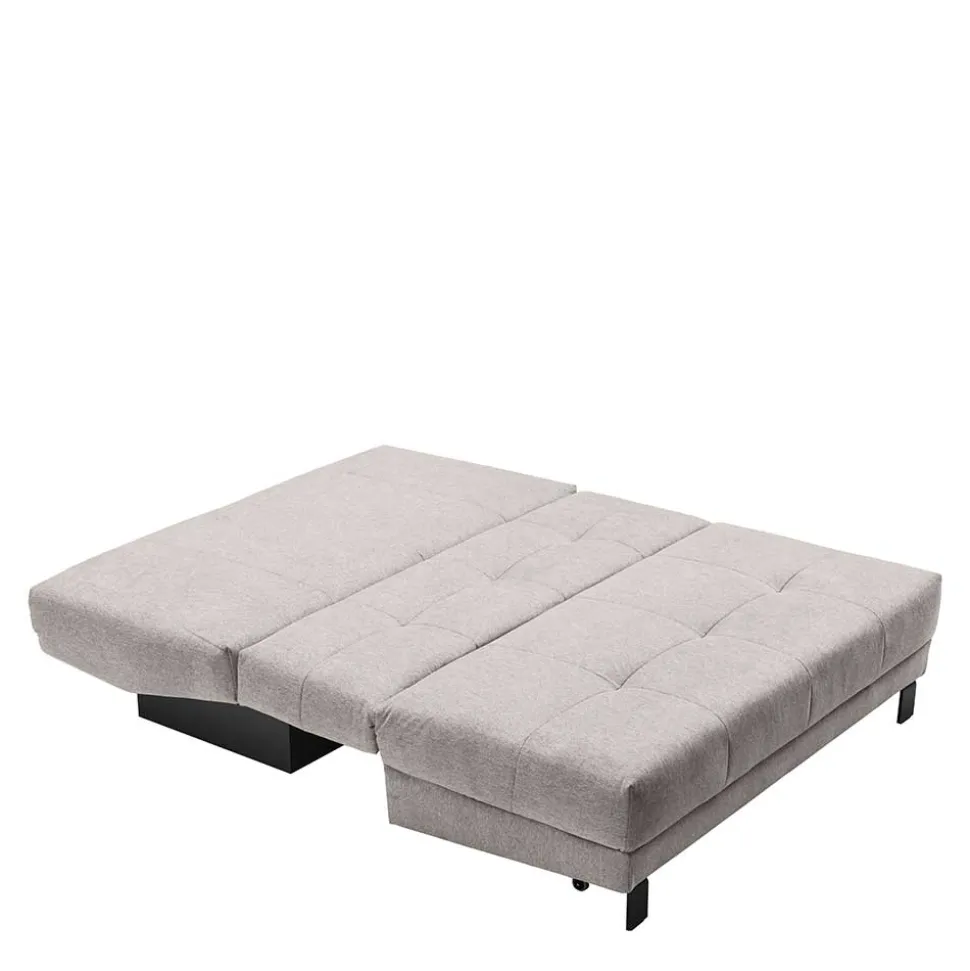 Das Schlafsofa „Bino“ ist ohne Armlehnen gestaltet und überzeugt durch sein schmales Design. Der Rücken ist echt bezogen, sodass es frei im Raum platziert werden kann. Mit wenigen Handgriffen lässt sich das Sofa in eine komfortable Schlafgelegenheit verwandeln, die eine Liegefläche von ca. 140/160 x 200 cm bietet – ideal für Übernachtungsgäste. Obwohl es nicht als Dauerschlafplatz gedacht ist, bietet es eine maximale Belastbarkeit von 120 kg je Liegefläche und einen praktischen, integrierten Bettkasten für zusätzlichen Stauraum.