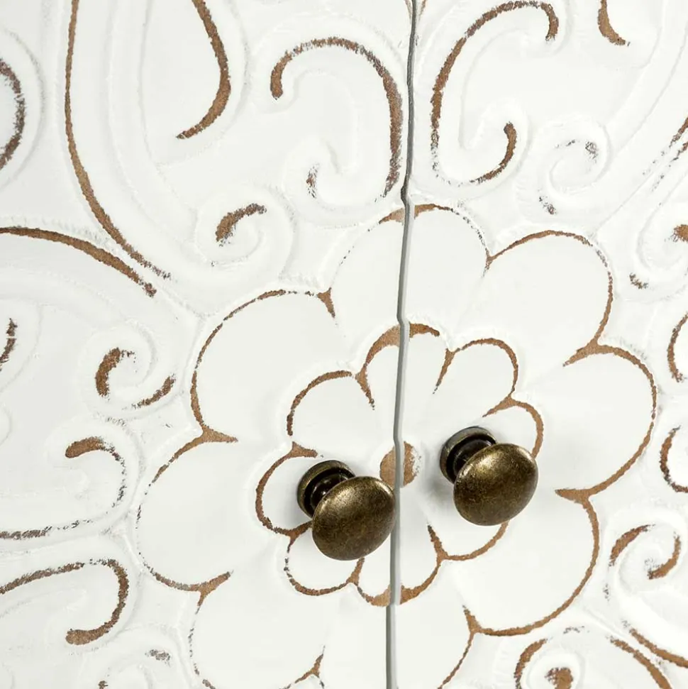 Tauchen Sie ein in die zauberhafte Welt des Orients! Mit dem Highboard Acacio holen Sie sich ein Möbelstück ins Haus, das mit seiner einzigartigen Mischung aus Eleganz und Exotik einen echten Blickfang darstellt. Die kunstvollen Ornamentmuster in goldenen Nuancen und die antikweißen, gewischten Holzoberflächen verleihen diesem Highboard seinen unverwechselbaren Charme. Ob als Stauraumwunder oder stilvolles Highlight – Acacio ist die perfekte Ergänzung für Ihr Zuhause.