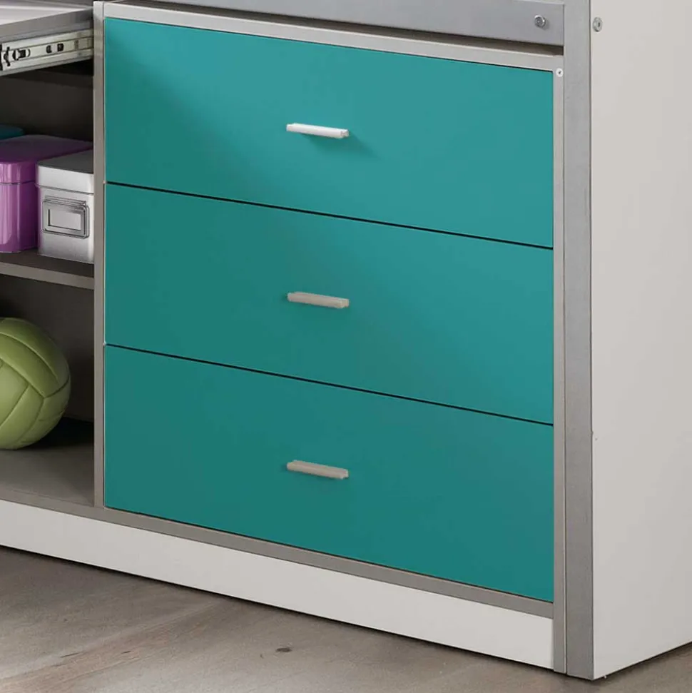 - Multifunktionelles Hochbett in Weiß/ Türkis