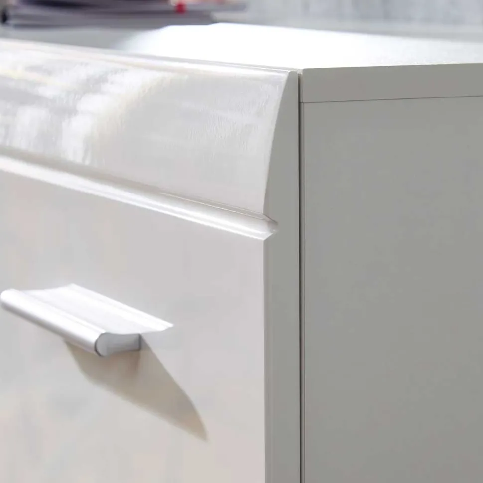 - Hergestellt aus MDF (Front) und Spanplatte (Korpus und Einlegeböden)