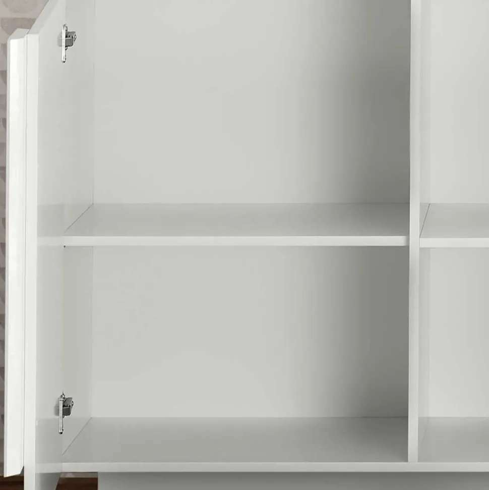 Das Sideboard „Kerym“ ist mehr als nur ein Aufbewahrungsmöbel. Es verbindet modernes Design mit hoher Funktionalität und sorgt in Ihrem Zuhause für ein stilvolles Ambiente. Die klare Linienführung und die elegante Hochglanz-Lackierung in Weiß machen dieses Sideboard zu einem echten Hingucker, der sich perfekt in jedes moderne Wohnkonzept einfügt.