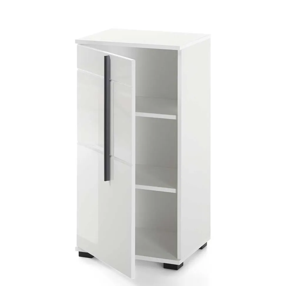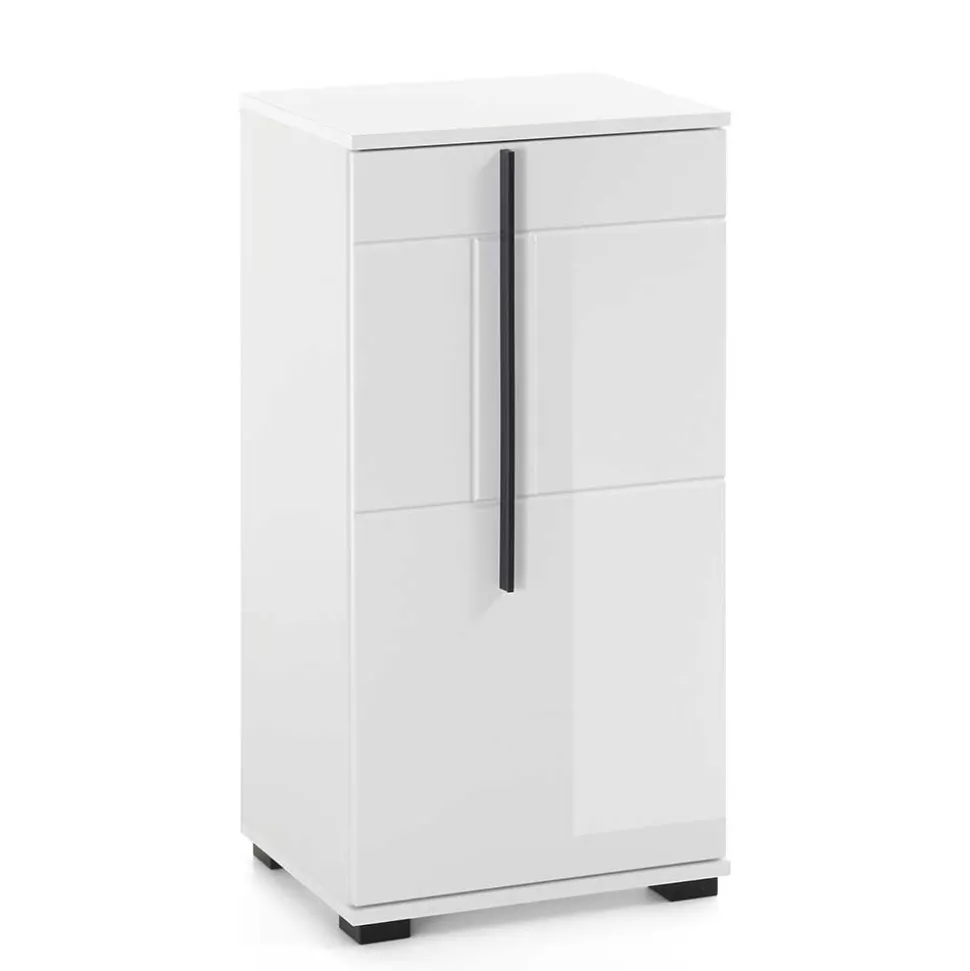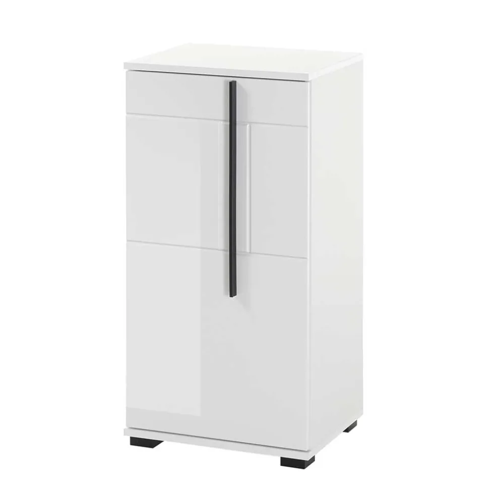 - Front hochglänzend weiß foliert und tiefgezogen, Korpus melaminbeschichtet