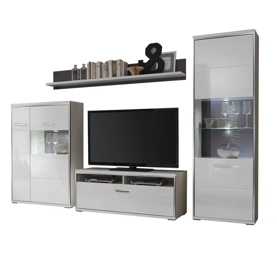 - 4-teiliges Set bestehend aus einem Highboard, einem TV-Element, einer Vitrine und einem Wandboard