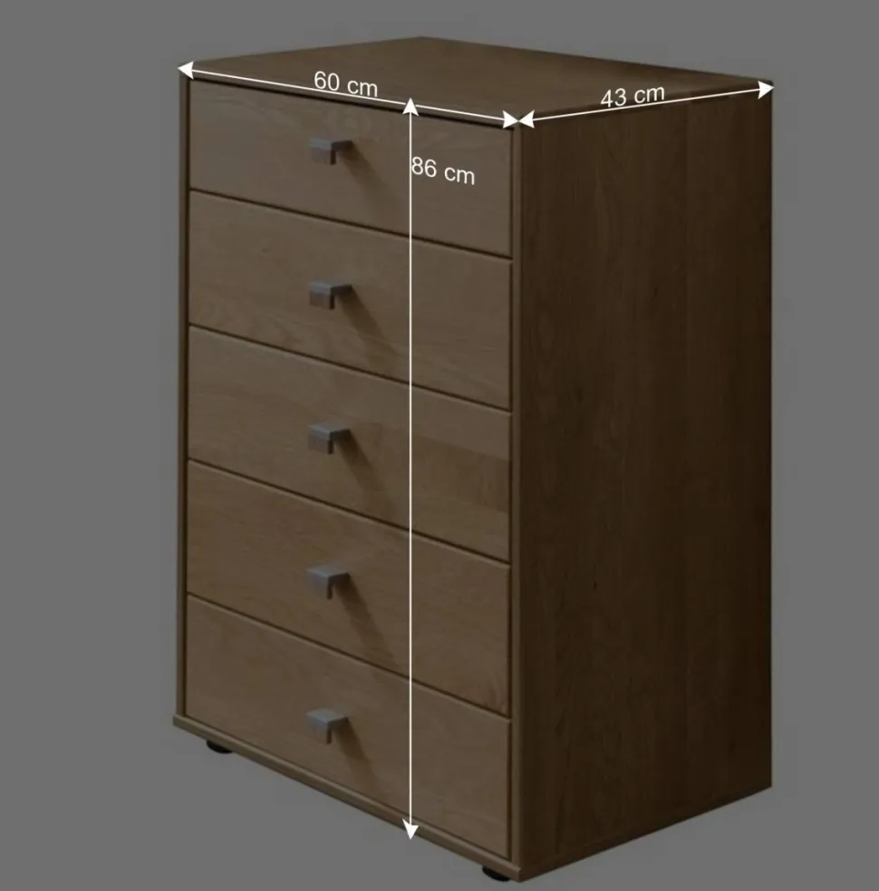 Die Kommode „Emdsiva II“ verfügt über eine durchdachte Unterteilung, die Ihnen größtmöglichen Stauraum bietet. Mit insgesamt fünf Schubkästen, ausgestattet mit Metallauszügen, Soft-Close-Funktion und Selbsteinzug, erleben Sie ein komfortables und geräuschloses Öffnen und Schließen der Schubladen.