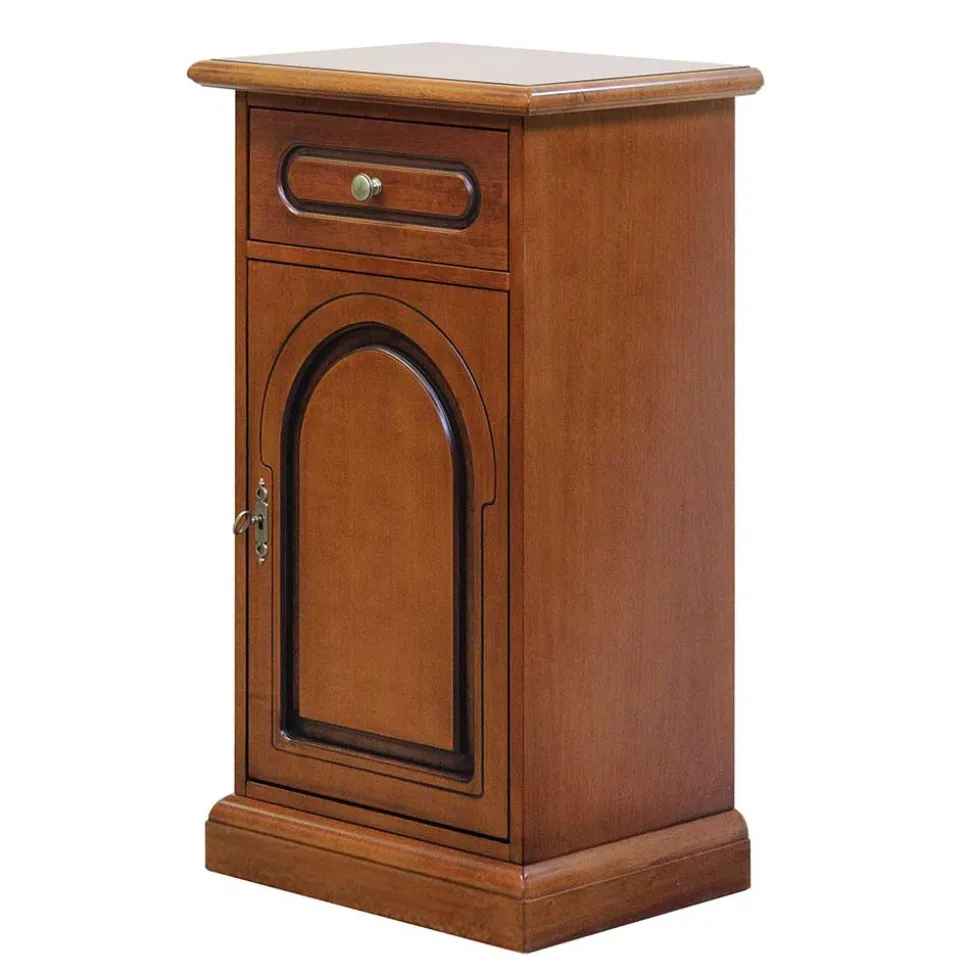 Mit den Maßen von 48 cm Breite, 82 cm Höhe und 34 cm Tiefe bietet die Kommode „Kimms“ ausreichend Stauraum, ohne dabei zu viel Platz zu beanspruchen. Die abschließbare Tür mit Türanschlag rechts sorgt für eine sichere Aufbewahrung Ihrer persönlichen Gegenstände. Die Metallscharniere sind besonders langlebig und garantieren eine lange Lebensdauer der Kommode. Im Inneren befindet sich ein verstellbarer Einlegeboden, der den Stauraum flexibel gestaltet und an Ihre Bedürfnisse anpasst. Die Schublade oben verfügt über einen Holzauszug, der sich besonders leicht öffnen und schließen lässt und für eine lange Haltbarkeit sorgt.