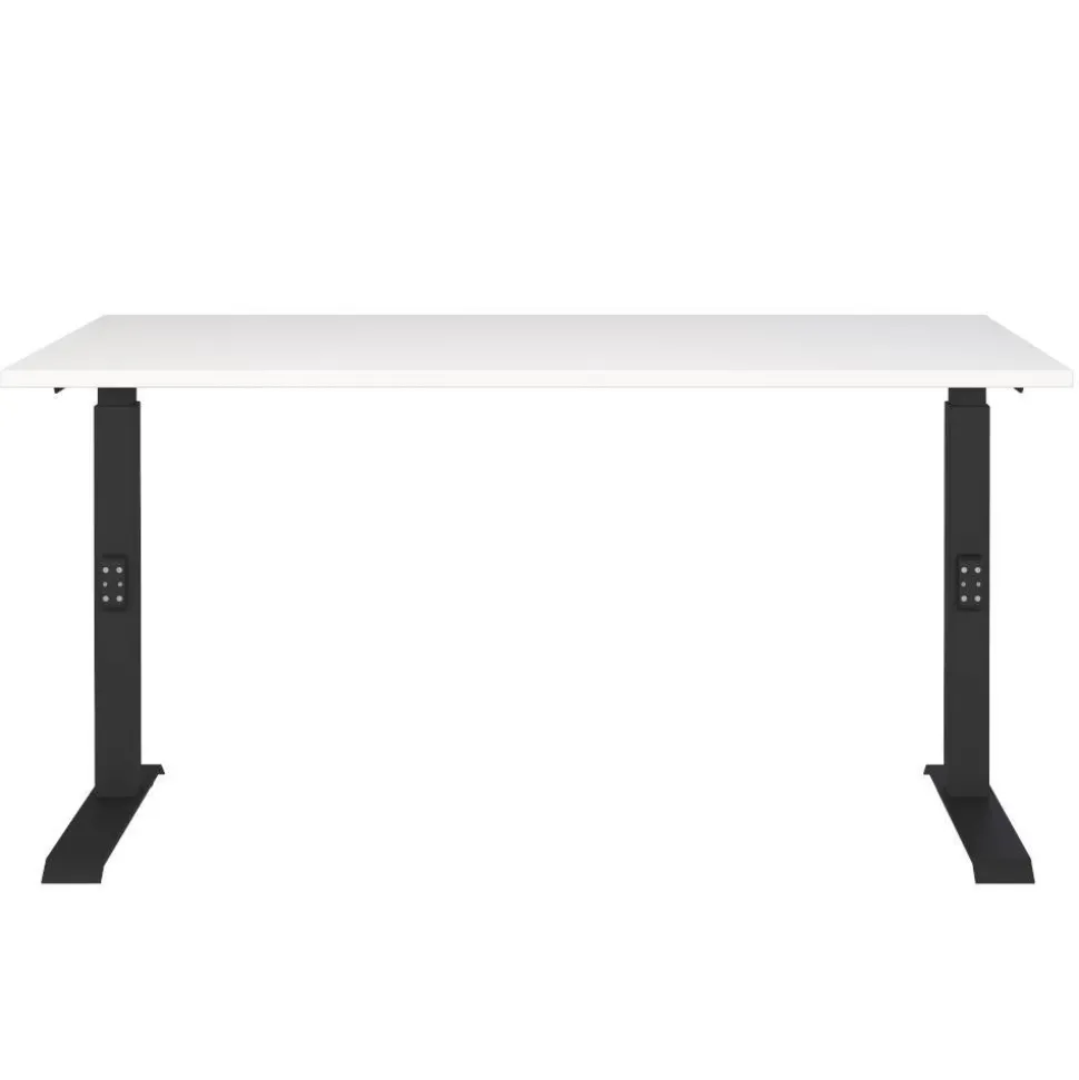 - Schwarz pulverbeschichtetes Metallgestell in T-Form mit nivellierbaren Kunststoff Bodengleitern