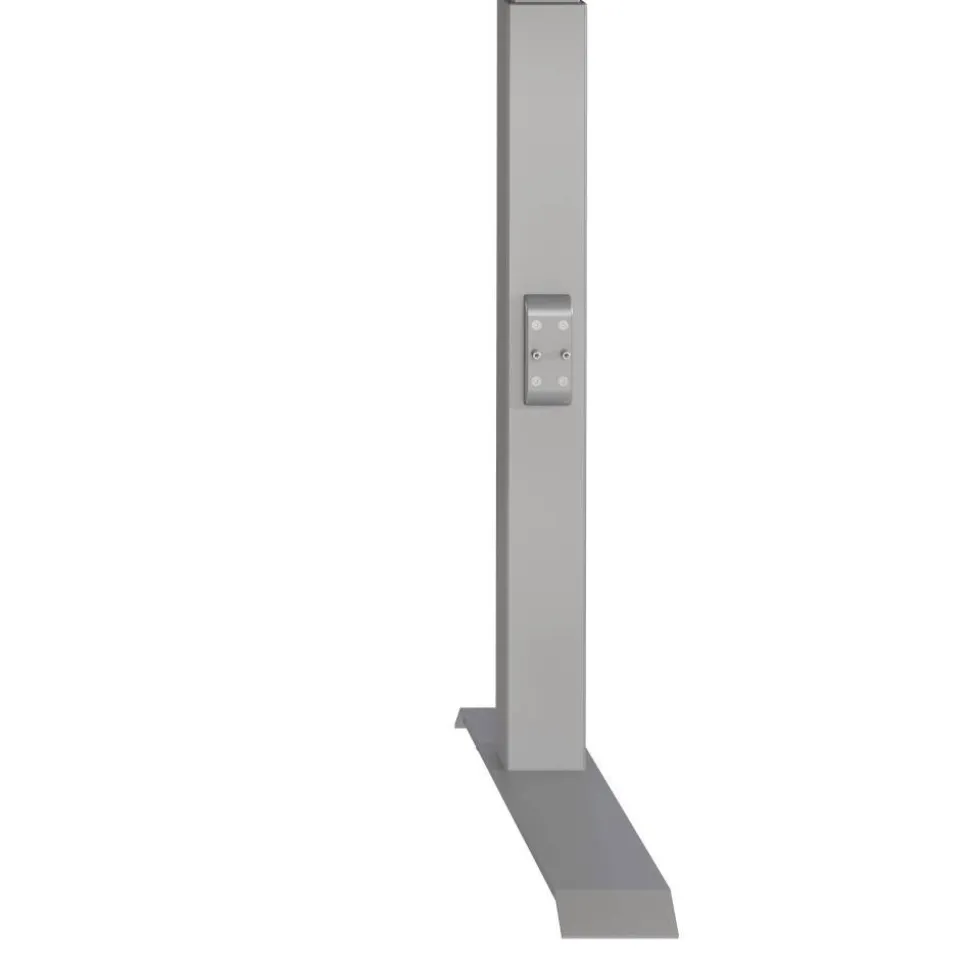 - Silberfarbig pulverbeschichtetes Gestell in T-Form mit nivellierbaren Kunststoff Bodengleitern
