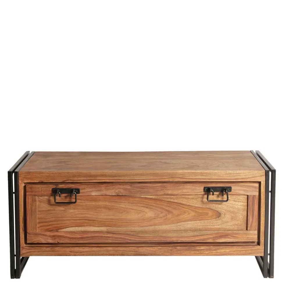 Die Sitzbank mit den Maßen 130x50x40 cm bietet nicht nur eine bequeme Möglichkeit zum Schuheanziehen – sie verbirgt hinter einer cleveren Klappe auch Platz für rund acht Paar Schuhe. Der Einlegeboden im Inneren sorgt für Übersichtlichkeit, während das kantige Metallgestell die nötige Stabilität und ein modernes Erscheinungsbild liefert.